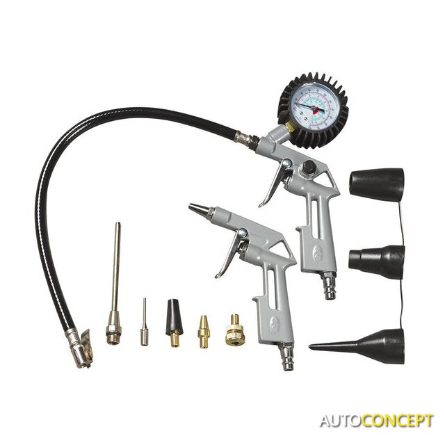 | Комплектация | • Компрессор• Воздушный шланг, 3 м• Пневмопистолет с манометром для накачки• Пневмопистолет для продувки• Удлиненная насадка для продувки• Игла для накачки мячей• Универсальный адаптер для клапанов с внутренним диаметром 6 мм• Универсальный адаптер для клапанов с внутренним диаметром 9 мм• Адаптер для накачки велосипедных шин• Насадки для накачки лодок, матрасов, бассейнов• Переходник (для насадок накачки лодок, матрасов, бассейнов) |