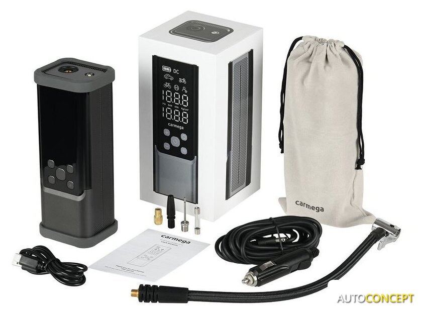 | Комплект поставки | - воздушный компрессор, - резиновые подставки, - набор переходников 3 шт., - кабель DC 12В, - кабель для зарядки- чехол для хранения, - руководство по эксплуатации |