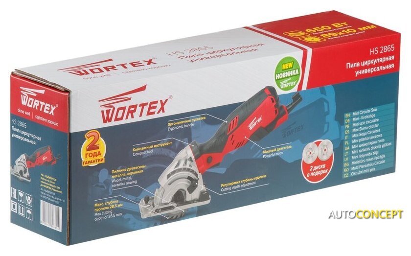 | Комплектация | - Пильный диск по металлу HSS - 1 шт. - Пильный диск по дереву ТСТ (установлен на пилу) - 1 шт. - Пильный диск алмазный по керамике - 1 шт. - Направляющая линейка - Пылеотвод |