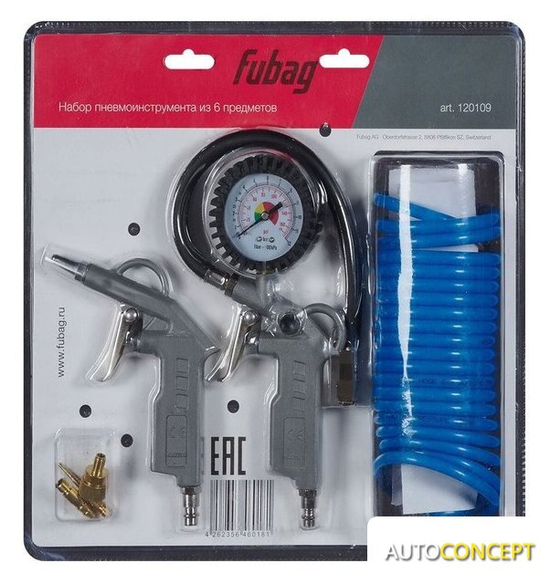 | Комплектация | - Пистолет для накачки с манометром - 1 шт.- Продувочный пистолет - 1 шт.- Спиральный шланг 5 м - 1 шт.- Насадки для накачки - 3 шт.- Блистер |