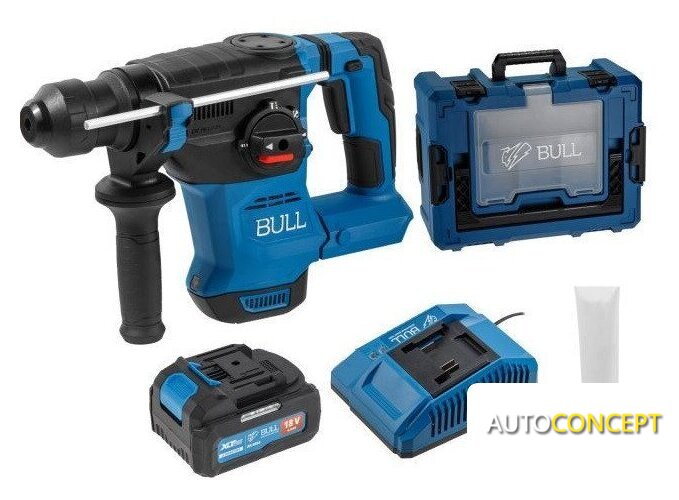 Комплект поставки | - перфоратор аккумуляторный - 1 шт.;- аккумулятор 4 А*ч - 1 шт.;- зарядное устройство 4 А - 1 шт.;- чемодан Xcase - 1 шт.;- дополнительная рукоятка - 1 шт.;- ограничитель глубины сверления - 1 шт.;- инструкция по эксплуатации - 1 шт.; |