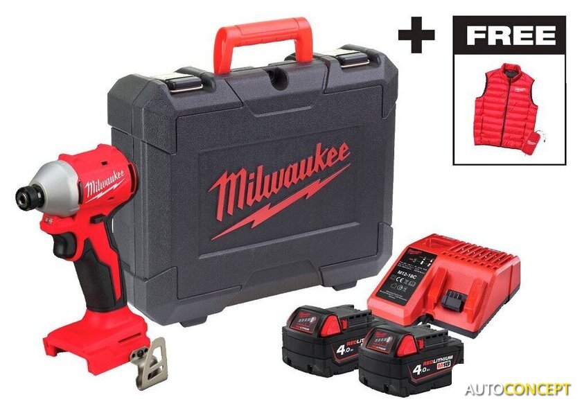 | Комплектация | - Аккумуляторный импульсный винтоверт Milwaukee M18 BLIDRC-402C (замена для 4933464534)( (Арт. 4933492840) - 1 шт- Аккумулятор Milwaukee M18 B4 4Ач (замена для 4931440022)( (Арт. 4932430063) - 2 шт- Быстрое зарядное устройство M12-M18 FC - 1 шт- Жилетка Milwaukee - 1 шт- Инструкция по эксплуатации- Кейс |