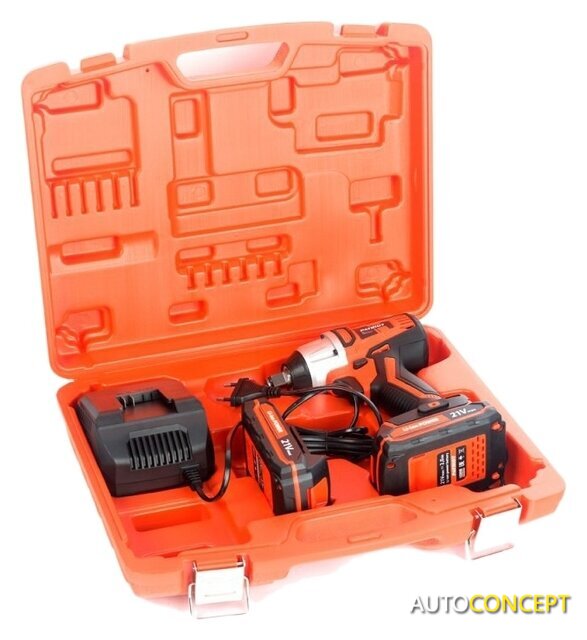 | Комплектация | - Гайковерт ударный аккумуляторный 1 шт.- Аккумуляторная батарея 2 шт.- Зарядное устройство 1 шт.- Кейс 1 шт.- Инструкция с гарантийным талоном 1 шт. |