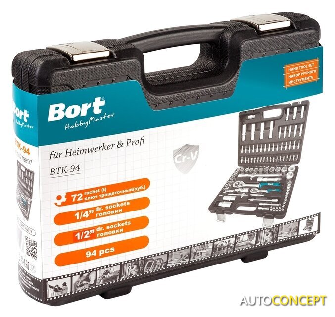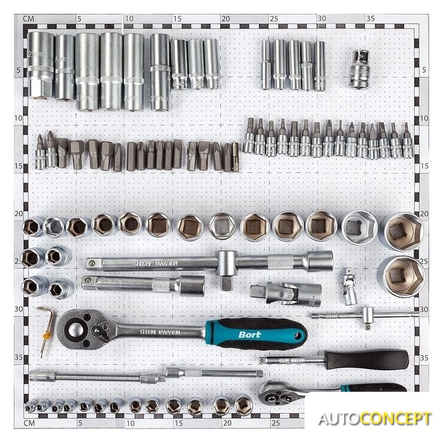 Комплектация | Биты 25mm 16шт (3, 4, 5, 6, 7, PH0, PH1, PH2, PH3, PZ0, PZ1, PZ2, PZ3, T10, T15, T20, T25, T30, T40, H2, H3, H4, H5, H5.5, H6, AD)Вороток Т-образный 1/4"Вороток-отверткаГоловка торцевая удлиненная 1/2" 4шт (14, 15, 17, 19)Головка торцевая удлиненная 1/4" 8шт (6, 7, 8, 9, 10, 11, 12, 13)Головки 1/2" 18шт (10, 11, 12, 13, 14, 15, 16, 17, 18, 19, 20, 21, 22, 23, 24, 27, 30, 32)Головки 1/4" 13шт (4, 4.5, 5, 5.5, 6, 7, 8, 9, 10, 11, 12, 13, 14)Головки торцевые 1/4" со вставками-битами 17шт (4, 5.5, 7, PH1, PH2, PZ1, PZ2, T8, T10, T15, T20, T25, T30, H3, H4, H5, H6)Головки торцевые свечные 1/2" 2шт (16, 21)Держатель для битКлюч трещеточный 1/2"Ключ трещеточный 1/4"Ключ шестигранный 3шт ( 1.5; 2; 2.5)Переходник для битУдлинитель 1/2" 125ммУдлинитель 1/2" 250 ммУдлинитель 1/4" 100 ммУдлинитель 1/4" 50 ммУдлинитель гибкий 1/4"Шарнир карданный 1/2"Шарнир карданный 1/4" |