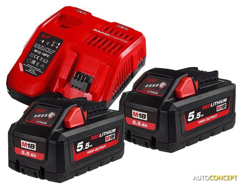 | Комплектация | - 2 аккумулятора M18 HB5.5- Зарядное устройство M12-18 FC |