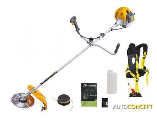 Аксессуары | - Мотокоса;- Двуплечный ремень с поддержкой спины;- Косильная головка Gunter MSG 25-2;- Пильный диск;- Набор инструментов;- Ёмкость для приготовления топливной смеси;- Руководство по эксплуатации. |