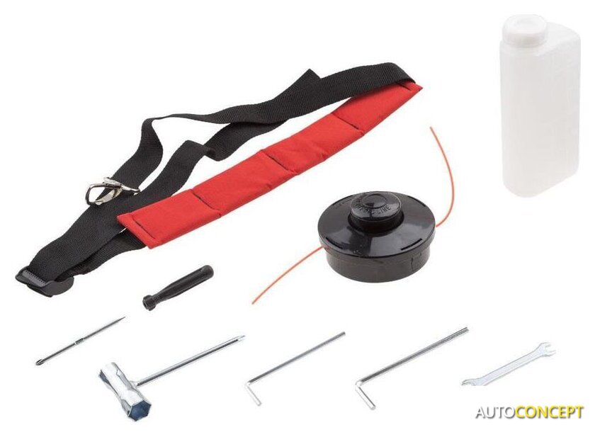 | Аксессуары | - Инструкция- Катушка с леской- Нож для травы- Ремень подвесной- Мерная канистра для смешивания топливной смеси- Ключи для монтажа и обслуживания |
