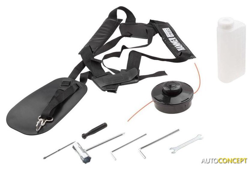 | Аксессуары | - Инструкция- Катушка с леской- Нож для травы- Ремень подвесной- Мерная канистра для смешивания топливной смеси- Ключи для монтажа и обслуживания |