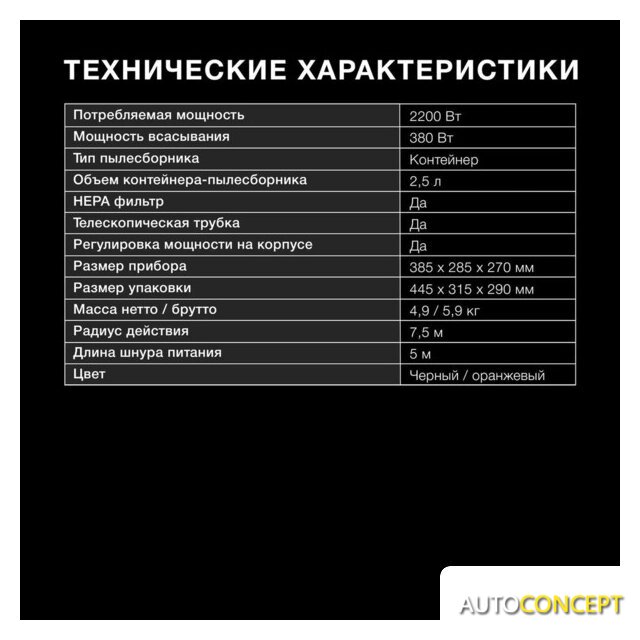| Объём пылесборника | 2.5 л |