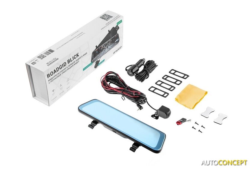 | Комплектация | - Видеорегистратор зеркало;- бандаж 4шт (2 запасные);- вторая камера с проводом 6 метров;- монтажный комплект второй камеры (2 самореза, клейкая лента);- салфетка для линзы и дисплея;- адаптер USB-microSD. |
