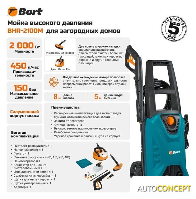 | Комплектация | - Пистолет-распылитель (1 шт)- Напорный шланг (1 шт)- Фильтр (1 шт)- Сменные форсунки (4 шт)- Пеногенератор (1 шт)- Коннектор для шланга быстросъемный (1 шт)- Игла для очистки сопла (1 шт)- Салфетка из микрофибры (1 шт)- Щетка для мытья террас (1 шт)- Щетка универсальная (1 шт)- Адаптер (1 шт) |