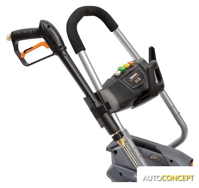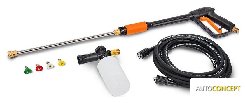 | Комплектация | • Мойка высокого давления;• Пистолет;• Шланг высокого давления;• Насадка на пистолет распылительная;• Четыре быстросъемные насадки на сопло;• Дополнительный фильтр тонкой очистки;• Быстросъемный коннектор;• Пеногенератор;• Игла для прочистки сопла;• Руководство пользователя;• Гарантийный талон. |