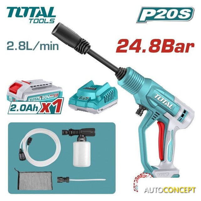 | Комплектация | - Мойка высокого давления - 1 шт.- Аккумулятор 2,0 Ач - 1 шт.- Зарядное устройство - 1 шт.- 2-х режимный распылитель - 1 шт.- Шланг 6 метров для подачи воды с быстросъемным соединеннием - 1 шт.- Самовсасывающий коннектор - 1 шт.- Пеногенератор 300 мл - шт.- Сумка - 1 шт.- Инструкция- Коробка |