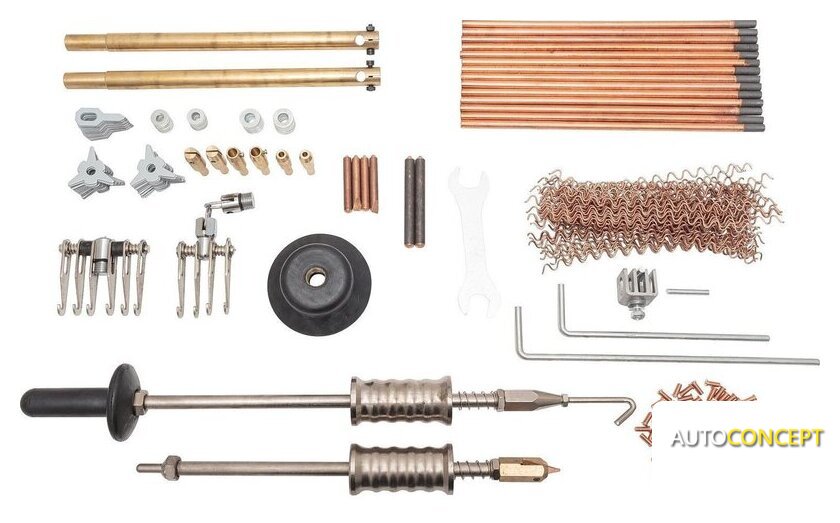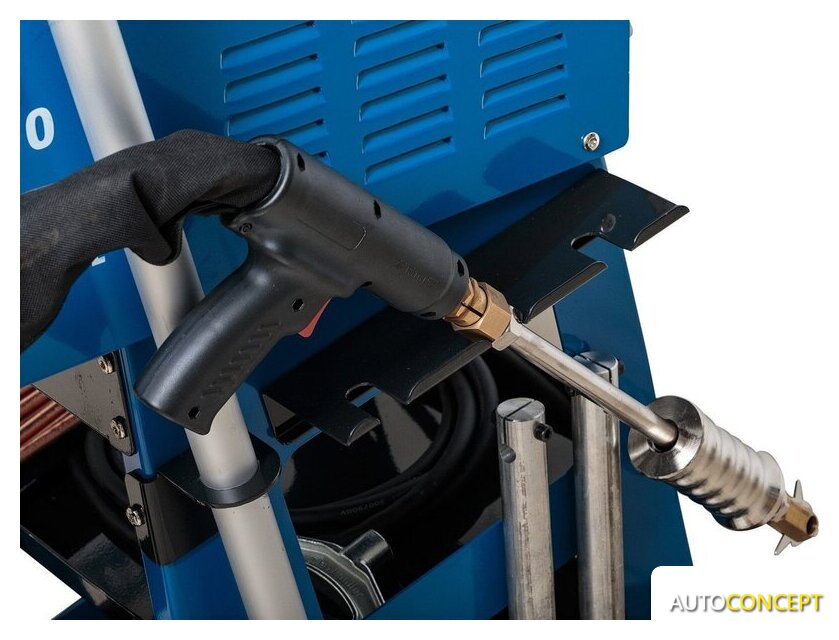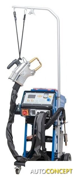 | Комплект поставки | - Споттер- Тележка на маневренных колесах- Расширенный начальный комплект расходников:Угольные электроды,Сварочный пистолетСварочные клещи с пневоприжимомУдлинители для клещейОбратный молоток к сварочному пистолету Обратный молоток с крючкомГребенка с шестью крючками Присоска для инерционного молотка2 дополнительные присоски Система вывешивания сварочных клещей — с вращением на 360ºФильтр-влагоотделитель |